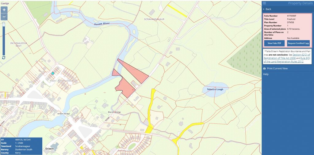 Folio KY76596F land Section B Sneem Side of Digital Hub c 0.383 Hectares.
